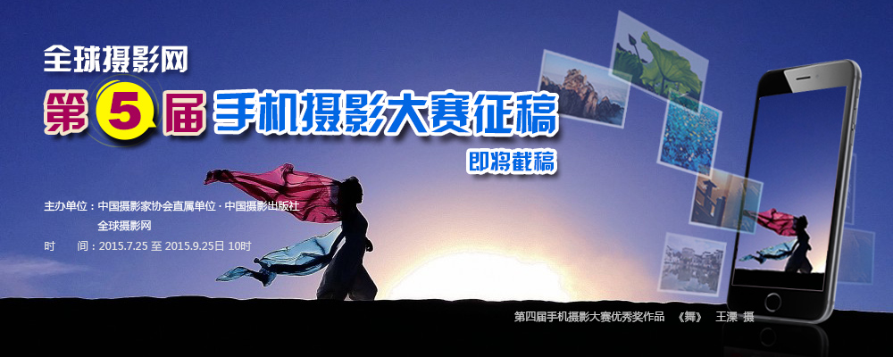由全球摄影网和中国摄影出版社共同举办的第五届手机摄影大赛将于2015年09月25日上午10时截稿。期间,我们收到了数千幅优秀的手机摄影作品,来稿作品涵盖纪实、人文、自然风光、花卉等多种类型,我们深切 ...
